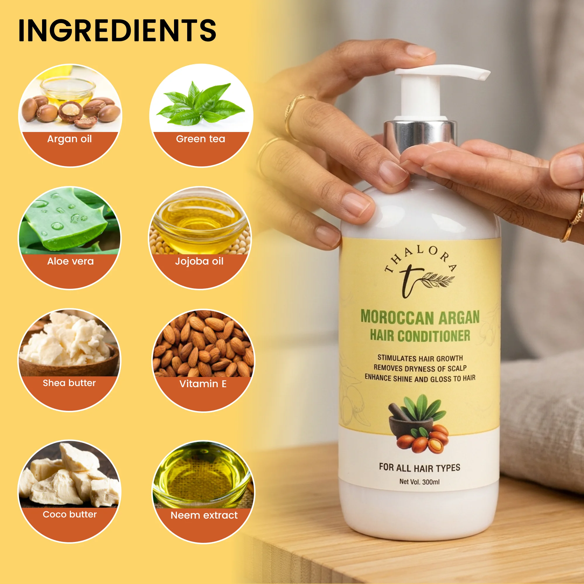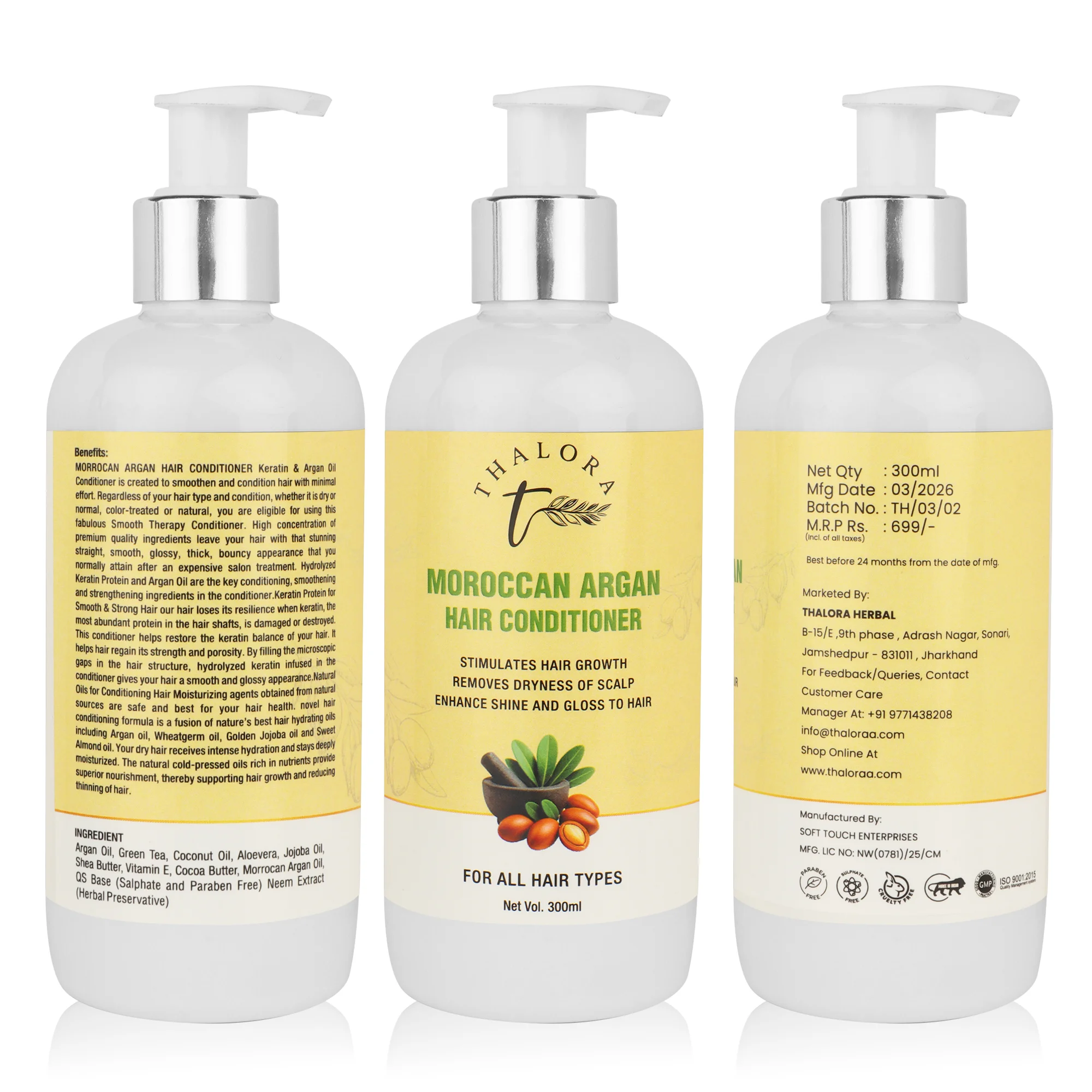 Thalora Moroccan Argan Hair Conditioner is a deeply nourishing formula designed to hydrate, smooth, and restore dry and damaged hair. Infused with the richness of Argan Oil, this conditioner helps improve hair texture, reduce dryness, and enhance natural shine.